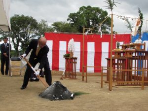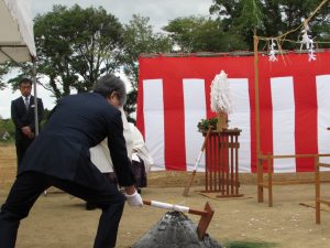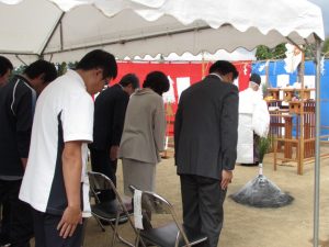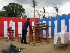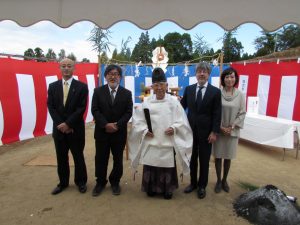 工事施工事業者と理事長により工期中の安全と、建設される建物が災害から守られるよう祈願させて頂きました。