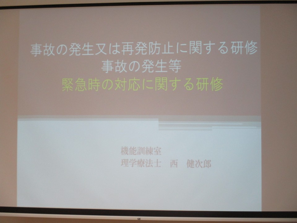 施設内研修として「事故の発生又は再発防止 事故の発生等、緊急時の対応に関する研修」を行いました。
