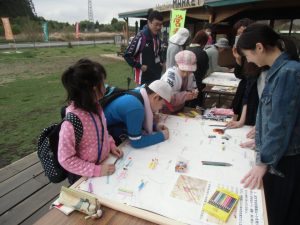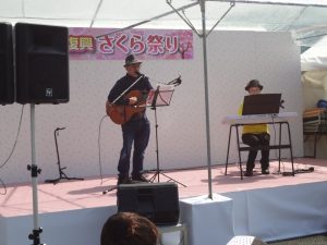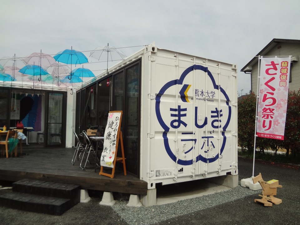 例年より遅めではありましたが、やっと桜も開花し、益城町にも少しずつ春の訪れが感じられるようになってきた1・2日にかけて、秋津川河川敷にある熊本大学が設置しているましきラボにて、(一社)まちづくり益城主催の”益城復興さくら祭り”が行われました。