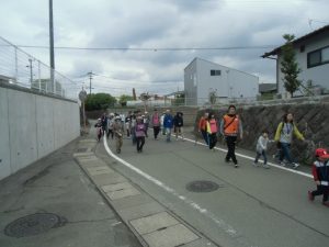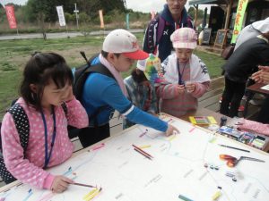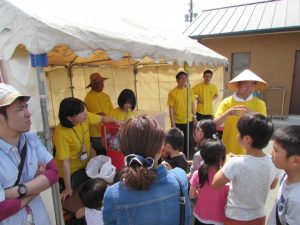 午前中のプログラムは少しづつ復興が進み始めた益城町を多世代で一緒に歩きながら、5年後10年後の益城町の姿を思い浮かべ未来に花が咲くようフットパスを実施しました。総勢72名で4歳から80歳までの方がご参加いただきました。