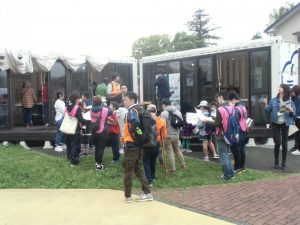 益城食堂様の芝生スペースにて県立大学の協力にてグループワークを実施。