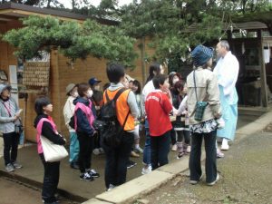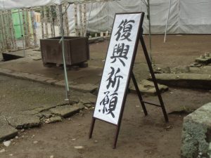 木山神宮 宮司の矢田様より震災の爪痕やお宮の取り壊し現場を見学。