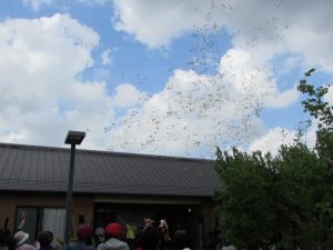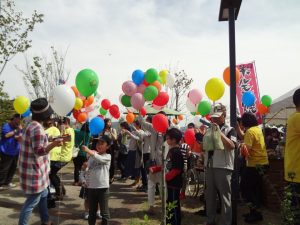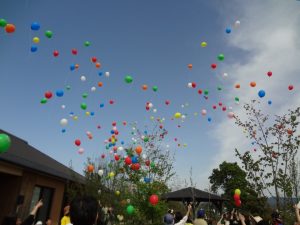 最後に、全国から頂いた温かいご支援に感謝の気持ちと、復興への願い、それぞれの思いを込めまして、大空に300個の風船を放ちました。