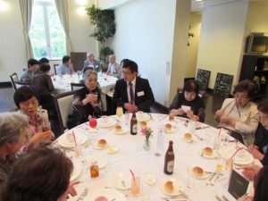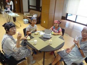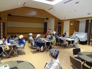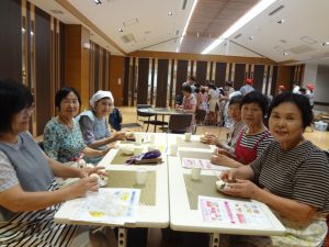 いよいよ茶話会です。各テーブルで会話も弾み、冷たいデザートに「冷たくて美味しい!」「食べると涼しくなって、他の方とのおしゃべりもできて楽しかった」とたくさんのお言葉を頂きました。