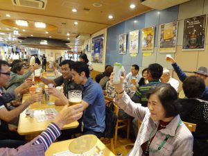 施設を出発し、バスに揺られて着いた先は、最初の目的地アサヒビール工場です。