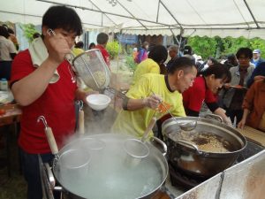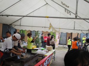 グルメイベントでは、「尾道てっぱん料理クラブ」より、尾道お好み焼き、「チームGANKOYA」より、瀬戸田レモンを使ったレモネード、気仙沼フカヒレ雑炊、気仙沼ホルモン等、協賛で広島県尾道市にある和菓子・洋菓子の老舗、松愛堂さんよりレモンケーキ、広島市にある株式会社山豊さんから広島菜漬けが振舞われ、ご来場のみなさんも美味しいグルメに満足されていました。