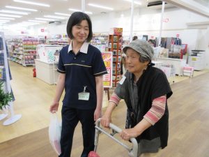 約1時間の買い物でしたが、日頃のリハビリの成果を発揮され、みなさん疲れも見せず色々なお店をみて回られ、買い物終わりの車内でも、買った品物の話題などで大いに盛り上がり、地域の皆様との良い交流の機会となりました。