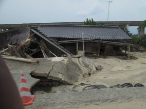 朝倉市内より大分方面に向かう道中では、中小河川が氾濫した模様で、未だに通行止めの区間や土砂で埋もれた家屋を目にしました。