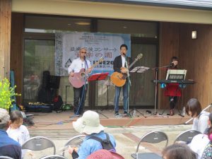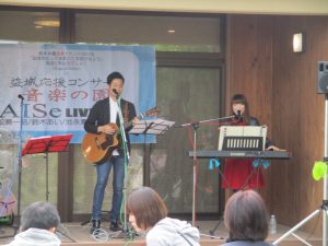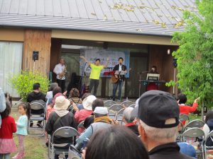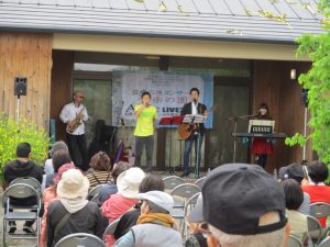 メインステージでは、尾道の喋る吟遊詩人 ローランド金田さんがMCを務め、全国で活躍されるシンガーソングライター松瀬一昭さん、鈴木あいさん、池永憲彦さん、井上フヂヲさんによるユニット「AISe」の音楽の園LIVEで一気に大盛り上がり!