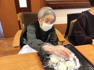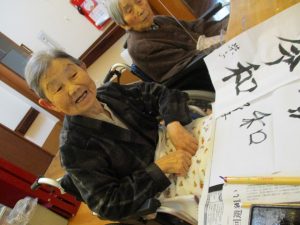 だご長寿の尊さをより実感していただけたら」、との願いを込めて、スタッフと一緒に書初めしました。