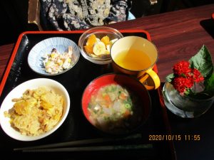 昼食には季節にあった、栗の炊き込みご飯とのっぺ汁を提供し