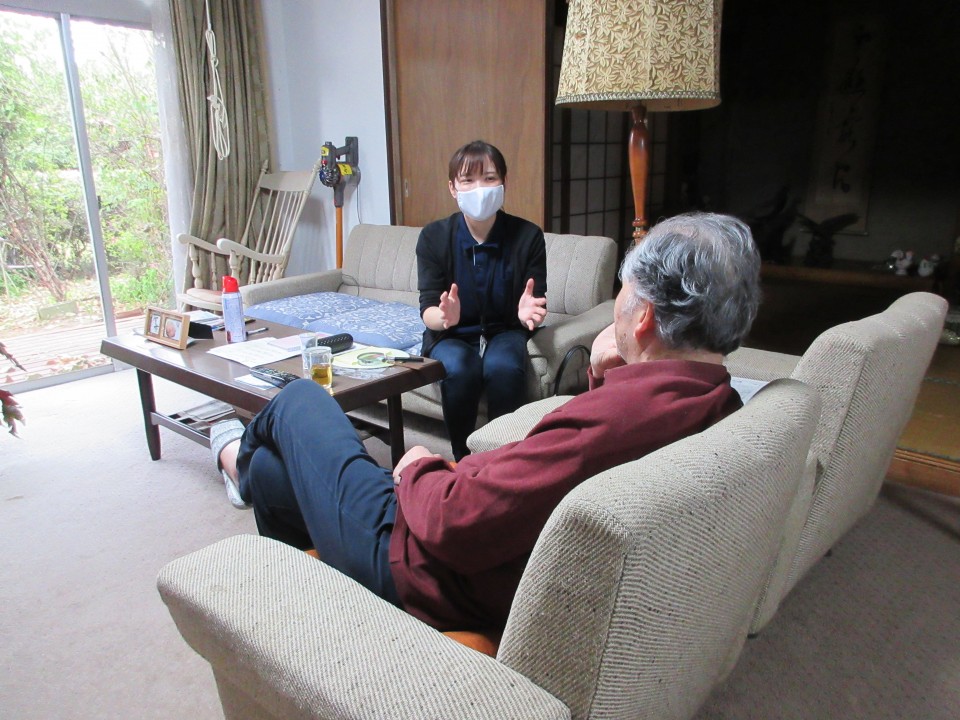 ↑ケアマネが毎月、利用者様の生活状況などを聞き取り、ケアプランが適切かどうか確認されます。