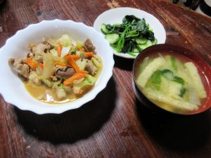 豚肉と白菜の味噌炒め、味噌汁、和え物です!